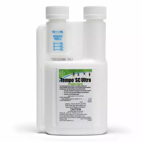 Tempo® SC Ultra Premise Spray is for broad-spectrum control of crawling, flying, and wood-infesting insect pests in and around animal housing, warehouses, and processing and packing plants.