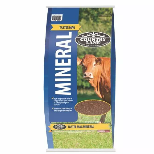Country Lane® Tastee Mag Mineral is designed for beef cattle on lush pasture on early season forages where grass tetany is a concern. It isformulated with a high magnesium level to aid in the prevention of grass tetany in cattle grazing lush pasture and is enhanced palatability to encourage consumption.