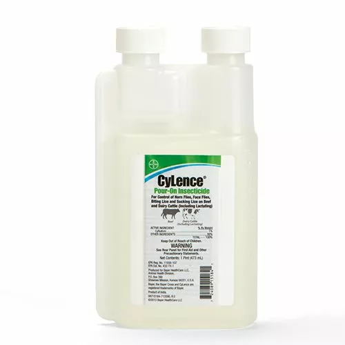 CyLence® Pour-On Insecticide works to control horn flies, face flies, biting lice and sucking lice on beef and dairy cattle (including lactating). This is a ready-to-use solution – no mixing required. It can be used any time of the year on cattle of any age or size. Apply required amount of product directly along the top of the back and top of the head of the animal.