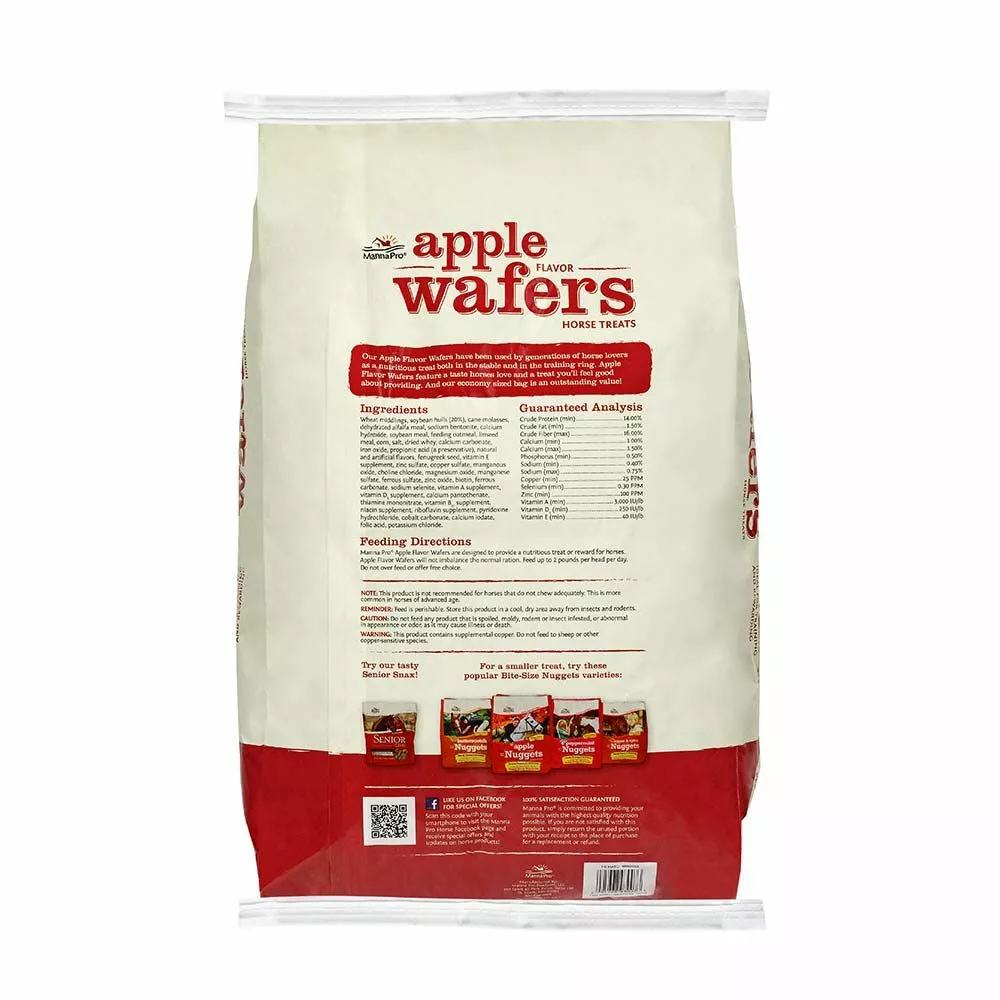 Manna Pro Apple Wafers are America’s favorite horse treats. The new, small wafer size conveniently fits in your pocket, making it ideal for training or rewarding. Manna Pro® Apple Wafers Wafers are so delicious, your horse won’t be able to resist the taste.