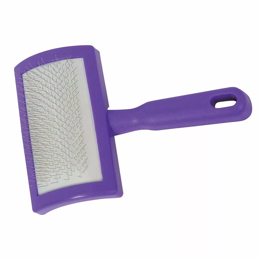 Weaver Leather Slicker is an economical plastic grooming tool with small stainless teeth perfect for fitting sheep legs and building leg wool for volume and the appearance of bigger leg bone. It also works great to separate the hair on cattle flanks, legs and tailheads.