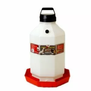 These 7 gallon plastic large capacity poultry waterers are dent-proof and easy to fill. The vacuum-sealing cap creates an automatic water flow. The rugged handle makes transport around the yard easy. Jar snaps compactly onto base.