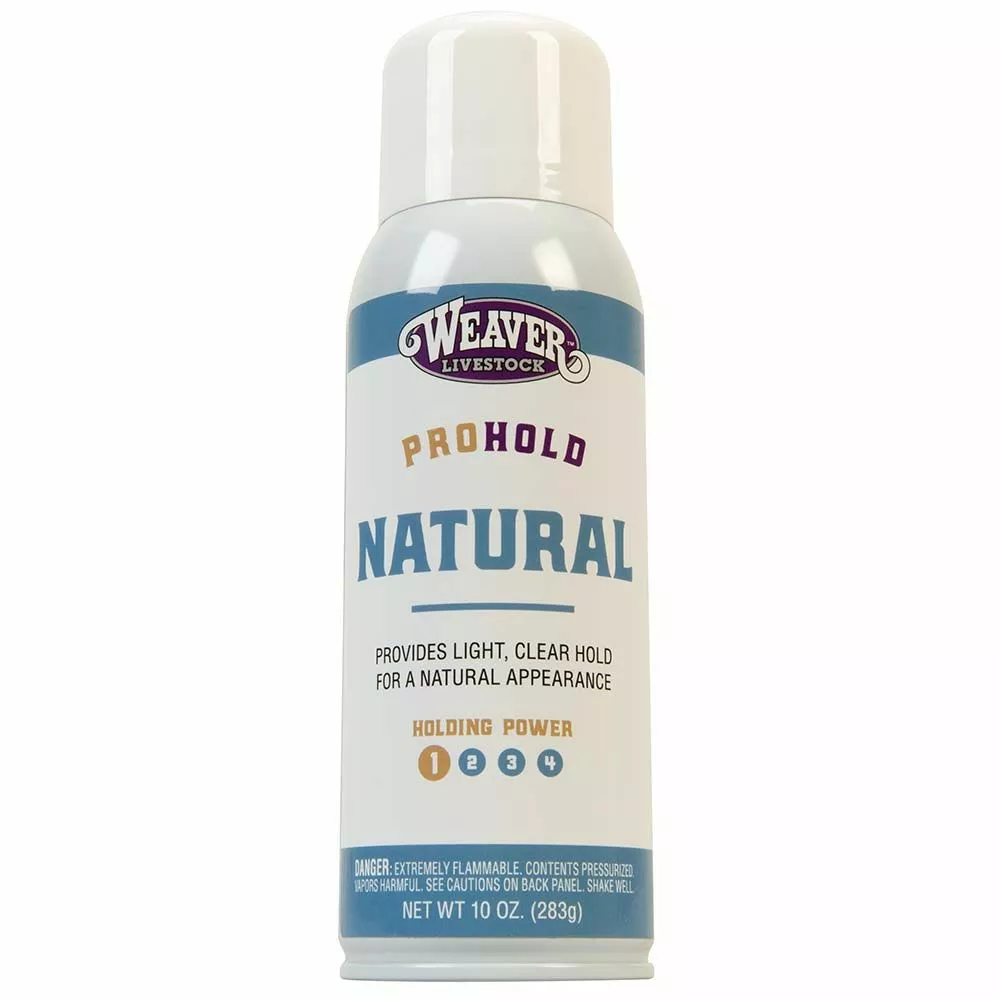 Weaver Leather ProHold Natural provides a light, clear hold. It offers hair holding control when a natural appearing final result is important. Light, quick drying and clear in appearance, this product is suitable for no-paint shows.