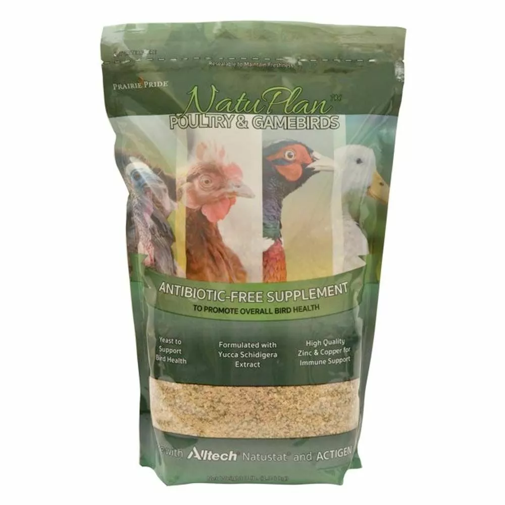 Prairie Pride® NatuPlan™ Poultry and Gamebird Feed is an antibiotic-free supplement for chickens and other poultry that will support overall bird health and growth. It includes high quality zinc and copper for immune support. When used with a complete feeding program, this premium product will show tremendous benefits. It is formulated with Alltech® Natustat® and Actigen®.