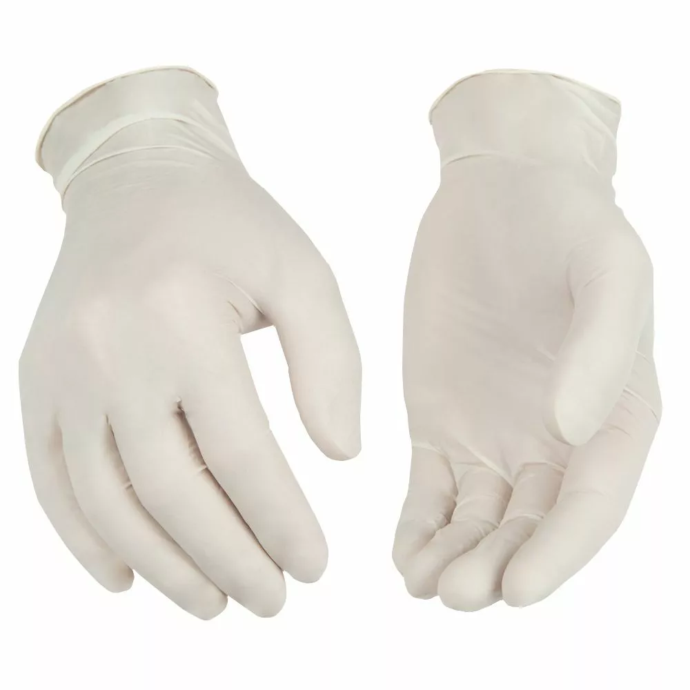This 100ct. Kinco Disposable White Latex Gloves features:Durable 6 mil. industrial grade latex that shields the hand from liquid permeation & provides excellent tactile-sensitivity, grip control, & dexterity. Powder-free interior that allows for worry-free use when working in dust & debris sensitive environments such as with fresh adhesives, inks, or in labs.Rolled beaded cuff that allows for quick on & off use, prevents roll-down, & offers drip protection for the wrist & forearm.