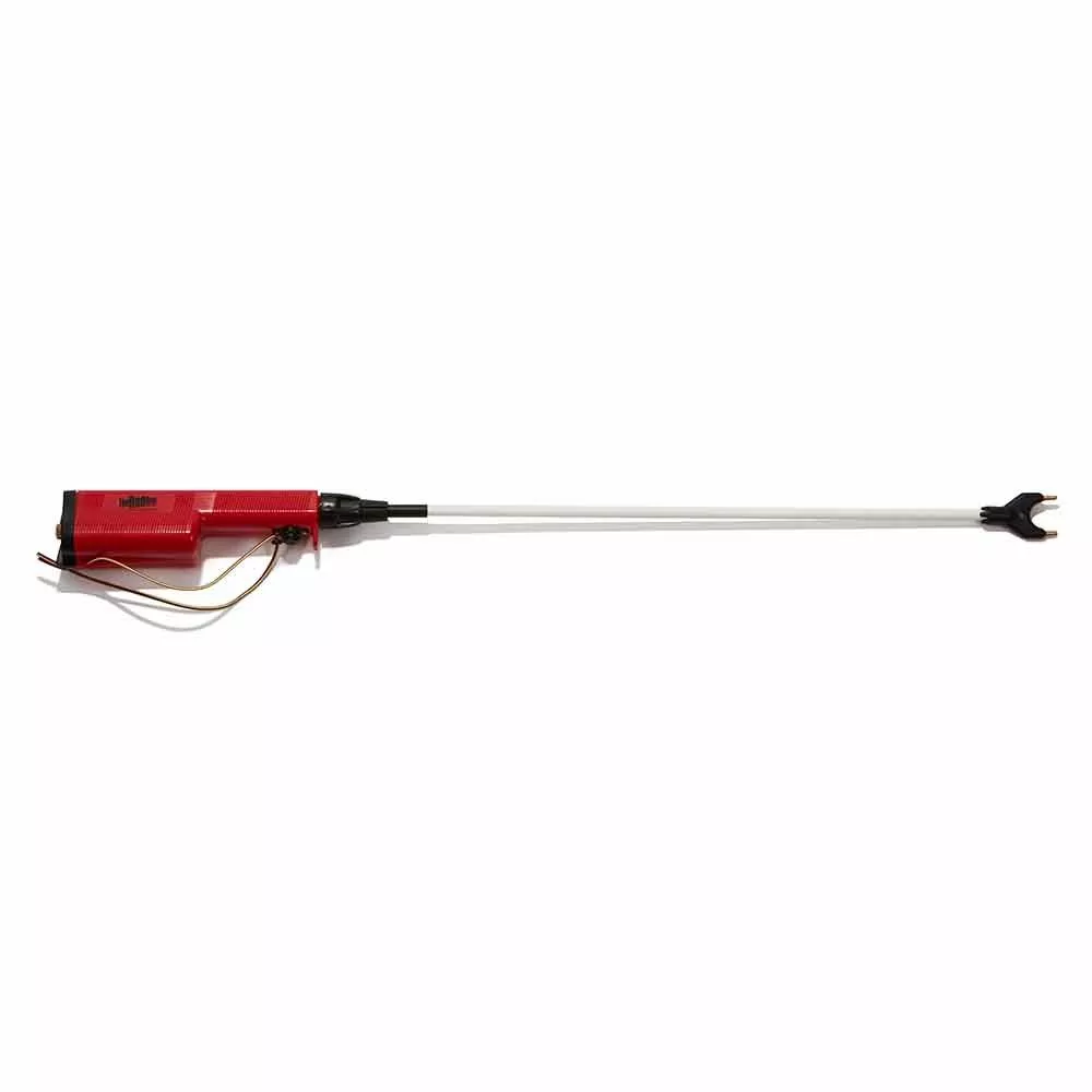 Hot-Shot® SABRE-SIX® Electric Livestock Prod is a battery-operated livestock prod at an economical price. Every unit is factory tested to high performance standards, making it the ongoing brand of choice for farmers, ranchers, and professional stock handlers and haulers. When used correctly, electric prods are a time-tested, humane way to aid in the movement of livestock; be sure to read and understand all documentation included before using this product. Permanently sealed, maintenance-free, solid-state motor resists damage by dirt or moisture. Latigo carrying strap and six C-cell batteries included. Comes with an interchangeable 36 in. rigid fiberglass shaft.