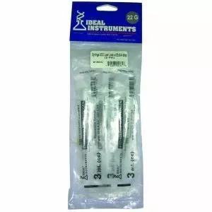 Ideal® 3cc Standard Disposable Syringes 3 Pk. have a clear polypropylene barrel for easy viewing of fluid levels. The needle is an ultra sharp, tri-beveled, anti coring tip needle.