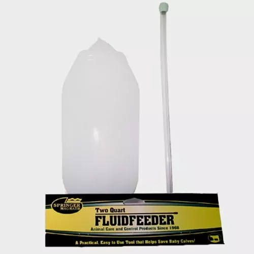 Springer Magrath Fluidfeeder gives cattleman and dairymen a practical, easy to use tool that helps save cattle and baby calves. Scoured, dehydrated cattle – even those that won't eat or drink – get the supportive fluids and energy they need to recover fast. The esophageal probe inserts easily into the esophagus. The easy to handle 2 qt. tube makes using the fluidfeeder a simple one person operation.